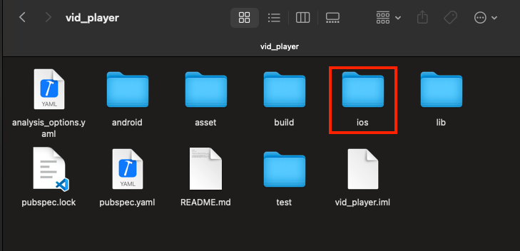 프로젝트 디렉토리에서 ios 디렉토리를 클릭합니다.