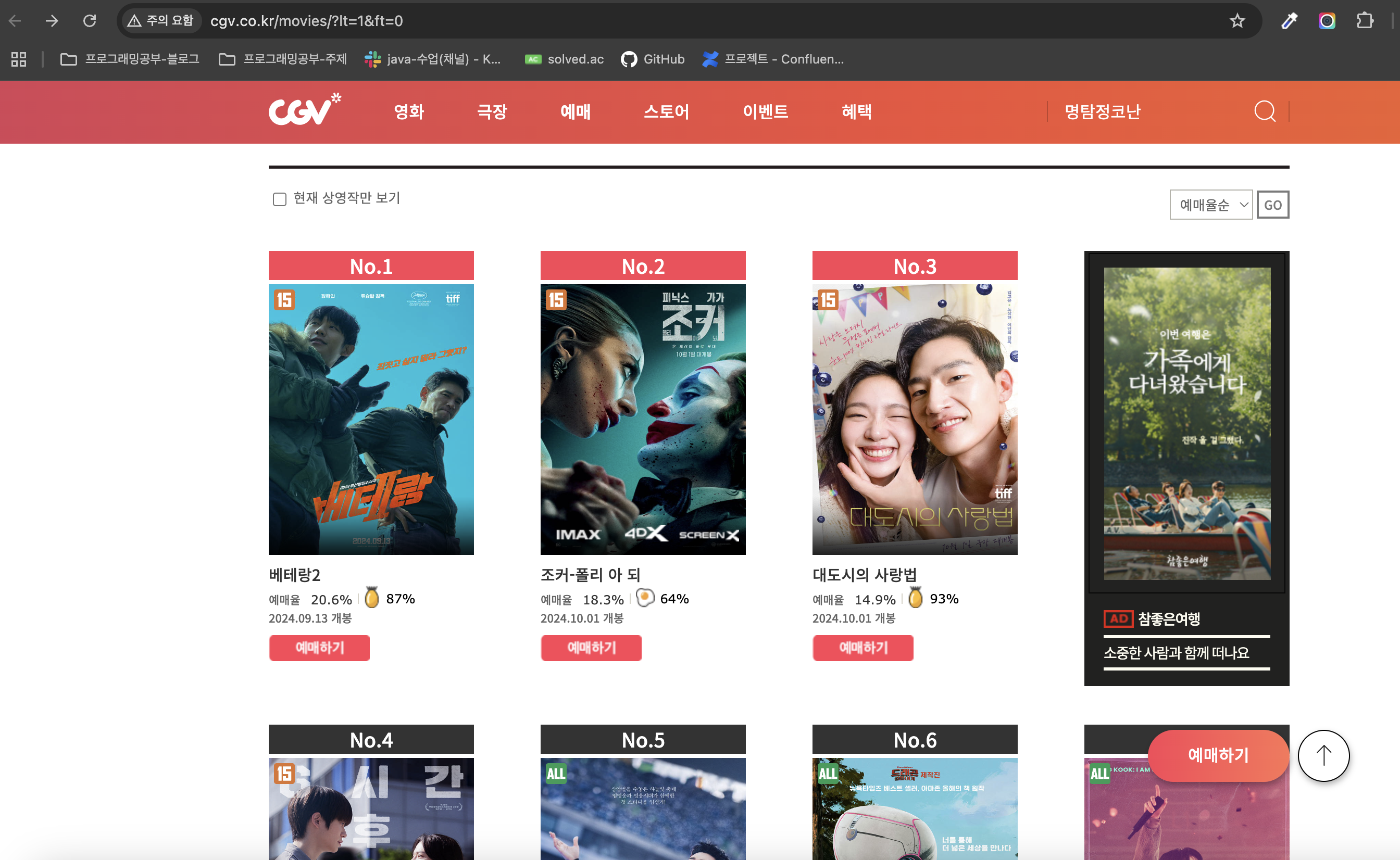 [JAVA] Jsoup 라이브러리를 이용한 CGV 크롤링 본문