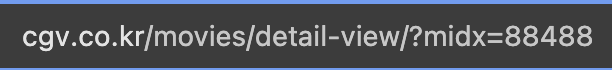 바로 주소가 http://www.cgv.co.kr/movies/detail-view/?midx=[영화PK값] 라는 일정한 구조를 가지고 있다는 것이다.