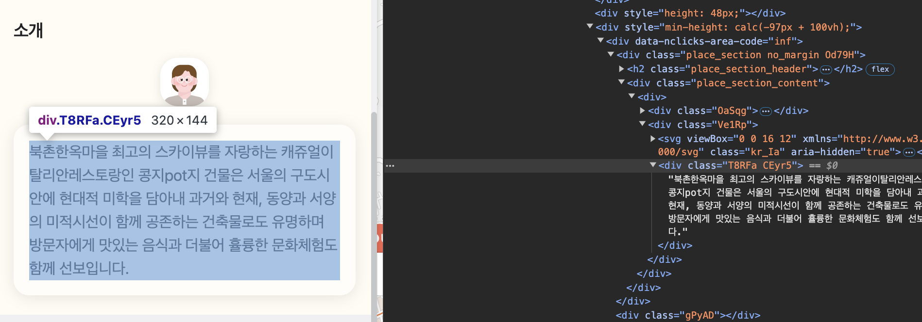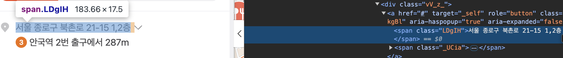 우리는 저 요소들을 가져와서 "정보" 부분에 해당하는 요소만 가져오려고 합니다.