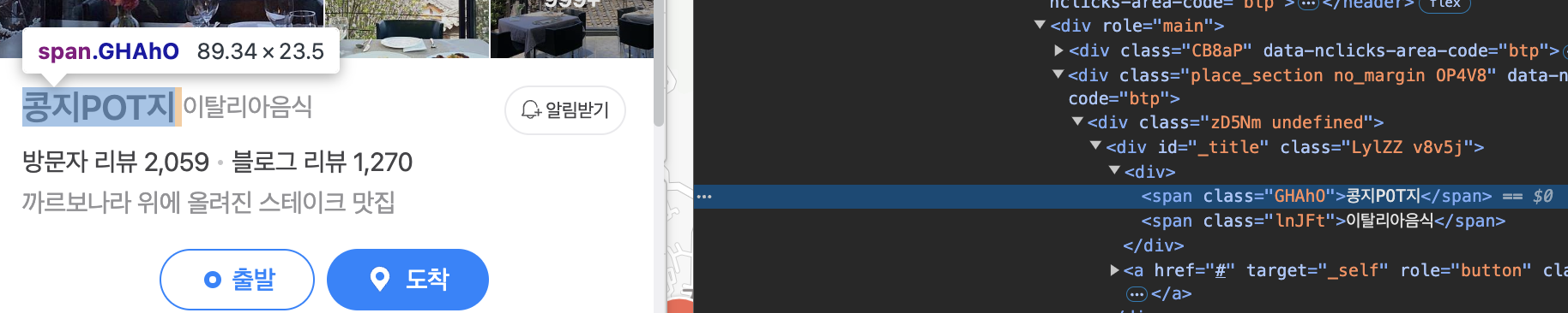 매장 이름을 가져오는 것과는 다르게 속성부분의 데이터를 가져와야하기 때문에 getText()가 아닌 getDomAttribute() 를 사용하였습니다.