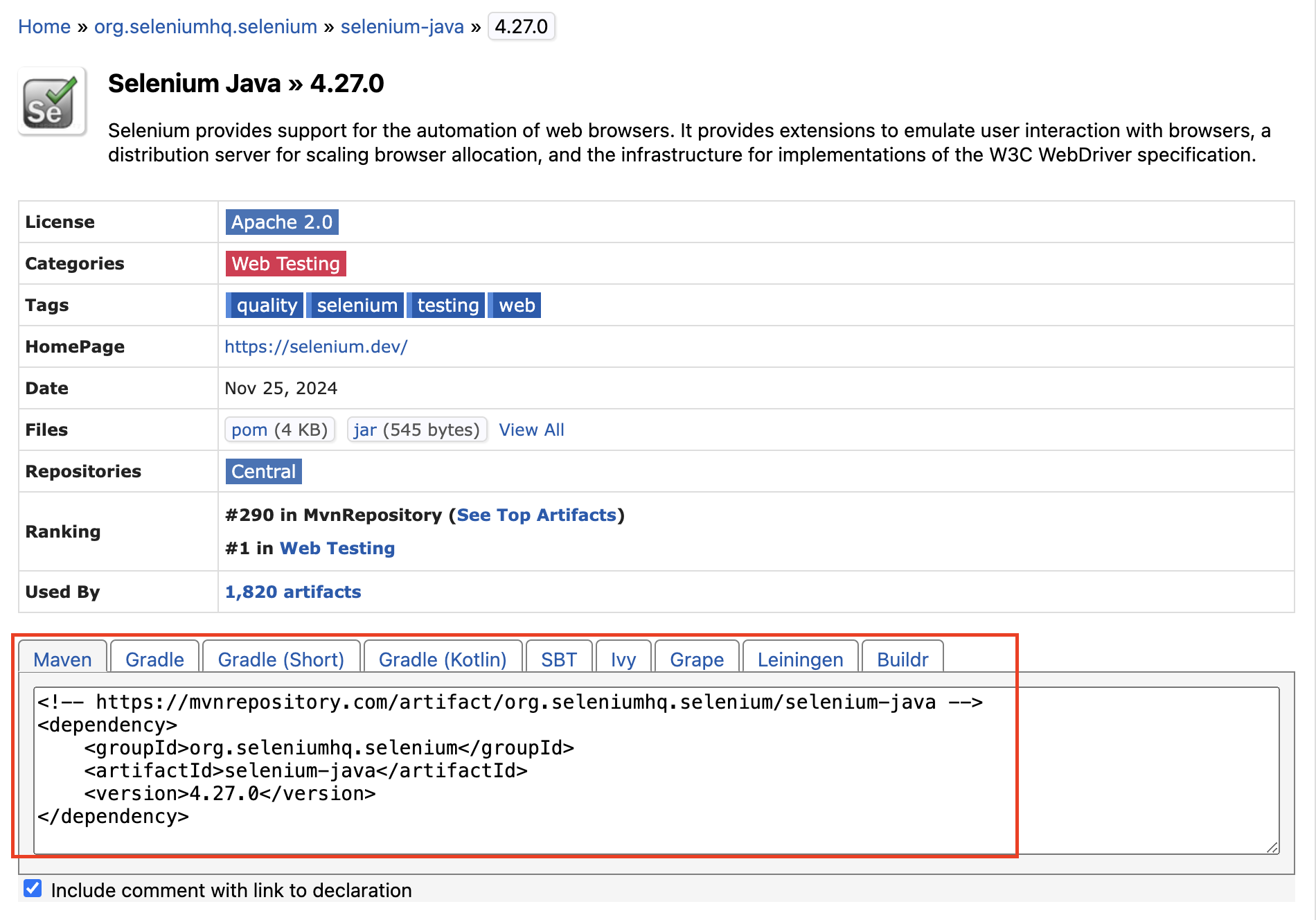 https://mvnrepository.com/artifact/org.seleniumhq.selenium/selenium-java