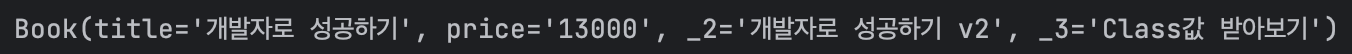 b4 = Book4('개발자로 성공하기', '13000', '개발자로 성공하기 v2', 'Class값 받아보기')