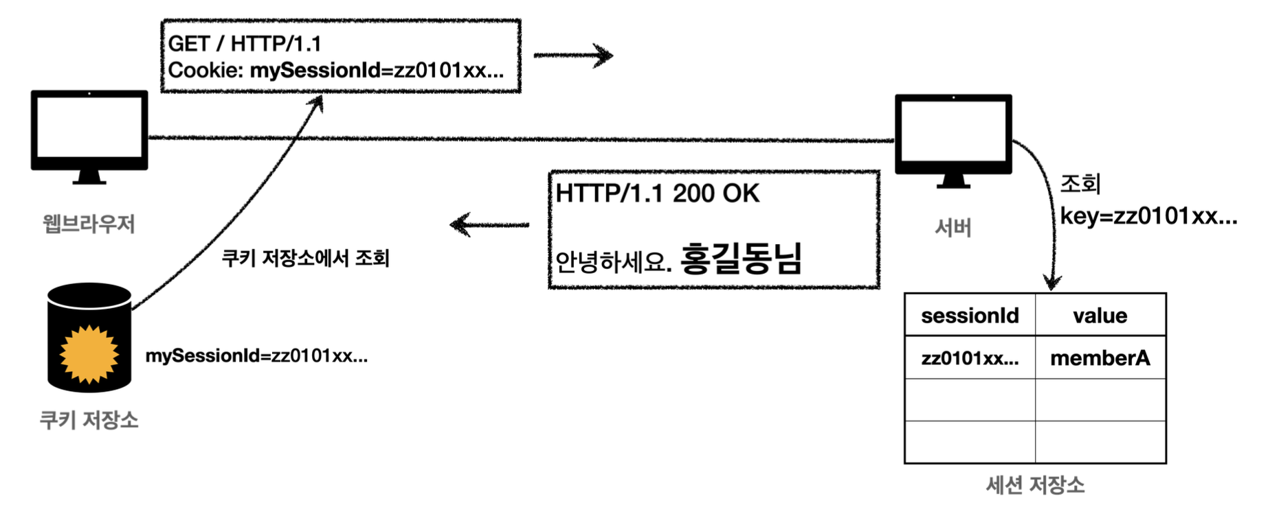 - 같은 요청을 할 경우 HTTP 헤더에 쿠키를 함께 보냅니다.