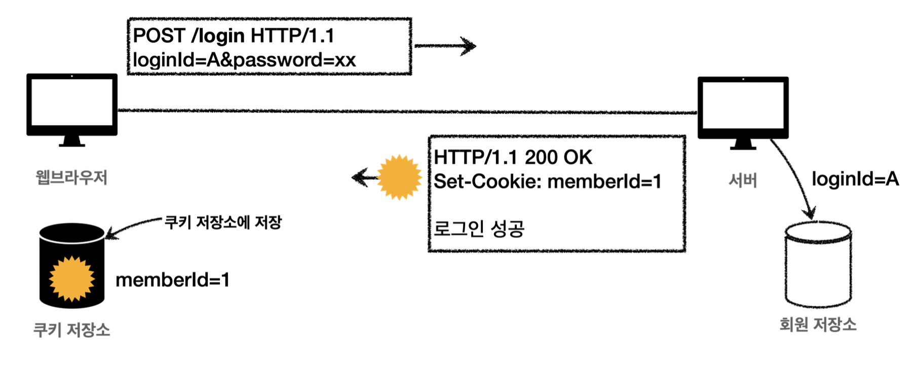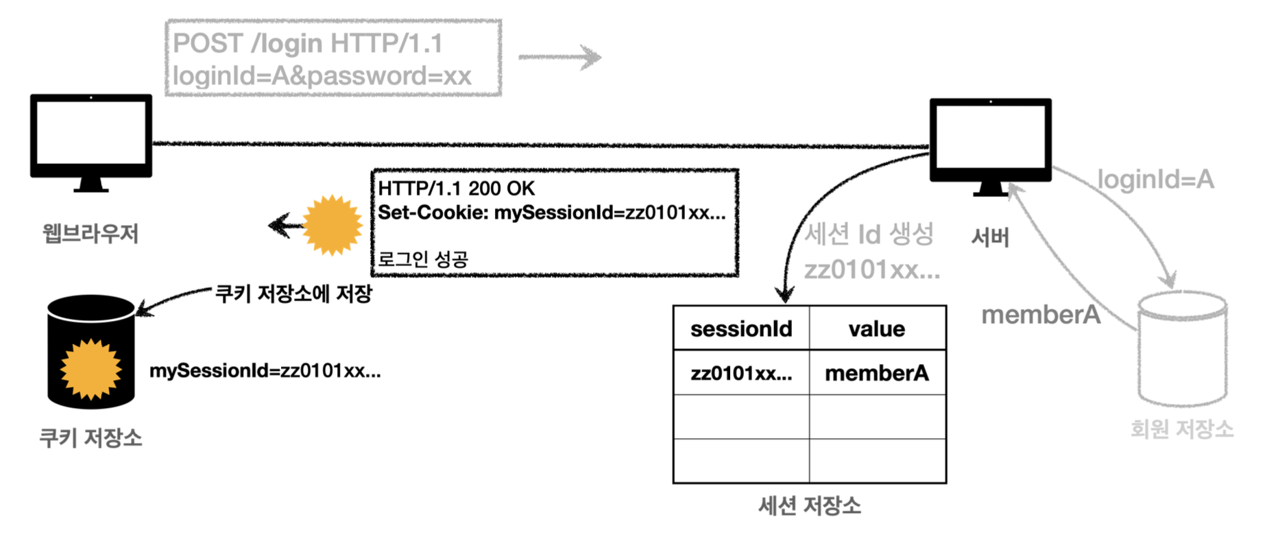 - HTTP 헤더에 쿠키를 포함시켜 응답합니다.
