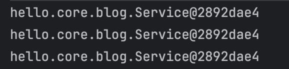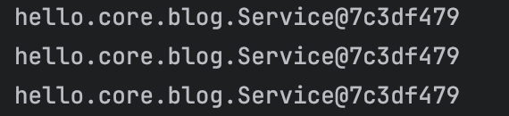 service1, 2, 3의 객체를 출력해 보면 다음과 같이 서로 같은 주소값을 가진 객체인 것을 확인할 수 있습니다.
