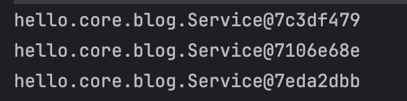 service1, 2, 3의 객체를 출력해 보면 다음과 같이 서로 다른 주소값을 가진 객체인 것을 확인할 수 있습니다.