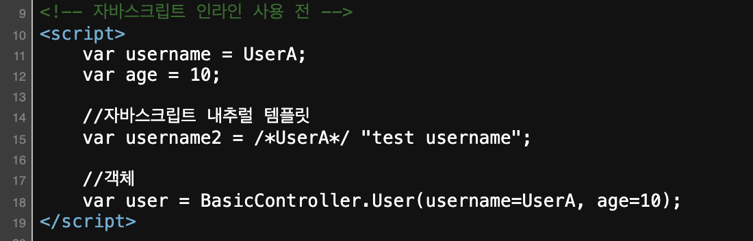 자바스크립트의 표준 HTML 주석은 타임리프가 렌더링 하지 않고 그대로 남겨둡니다.
